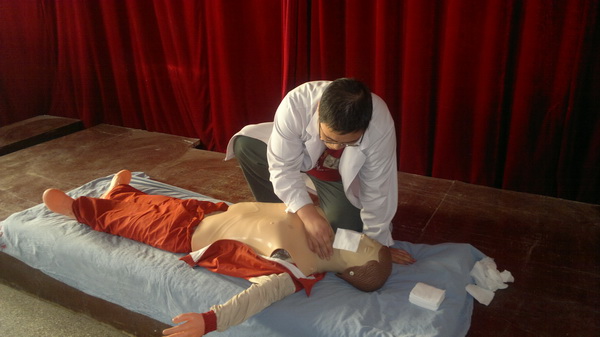 为切实做好“三基”培训工作,提高医务人员临床急救水平,规范医疗操作程序,保障医疗安全和医疗质量,我院于10月16日下午举办了“心肺复苏”知识专题培训。全院各临床科室医师参加了此次培训。在培训课上,急救中心王咏春主任进行了心肺复苏专题讲座,图文并茂地讲解了心肺复苏的操作流程、各环节的操作要领、心肺复苏的具体实施方法等。并与参加培训的医师们积极进行现场互动,探讨心肺复苏的具体操作方法和注意事项。