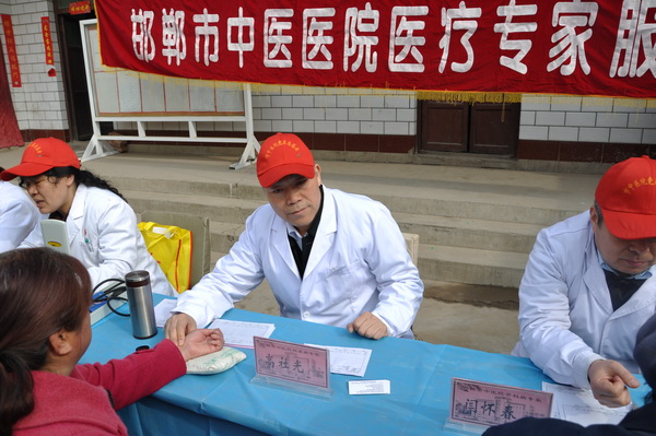 在今年的基层建设年活动中,涉县偏城镇前坪村和西达镇牛家村,是市卫生局派驻的两个驻村工作点,我院也派出农合办副主任康振丰任驻村工作组队员。当得知当地地处偏远山区,百姓看病就医不便的情况后,我院抽调脑科靳秀明主任、骨科闫怀春主任、心肺病科王红霞主任、内分泌科杨洁文主任等几名具有高级职称的医疗专家,组成专家义诊服务团队,由省名中医高社光院长和马登斌副院长带队赴涉县义诊服务,为老区百姓送医送药送健康。活动中专家们还深入到偏城镇卫生院,并与该卫生院结成帮扶对子,承诺不定期对该卫生院实施帮扶。当得知前坪村已经建好了卫生室但没有村医的情况后,高社光院长当场表示,医院将免费为该村培训一名全科医生。