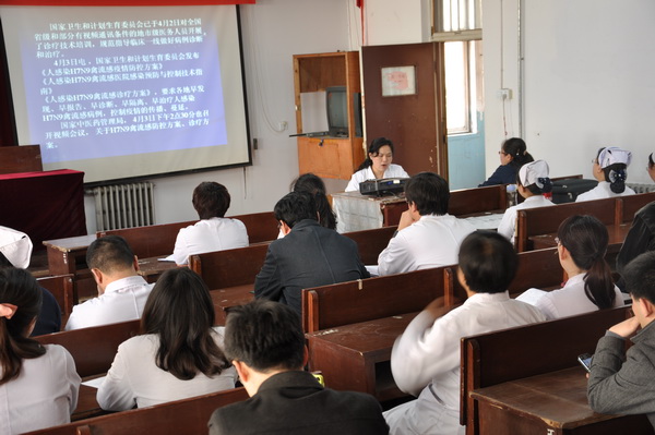 4月8日下午,我院组织开展人感染H7N9禽流感防治培训。由心肺病科王红霞主任向全院医护人员讲解了人感染H7N9禽流感防治相关知识,传达了国家卫生计划生育委员会发布的《人感染H7N9禽流感疫情防控方案》、《人感染H7N9禽流感诊疗方案》和《人感染H7N9禽流感医院感染预防和控制技术指南》,规范指导临床一线做好病理诊断和治疗。这是我院组织的第四次关于H7N9禽流感防治相关知识培训。 为全面做好疫情防控,学习新的防控诊疗知识,近一周以来,我院先后四次突击开展了人感染H7N9禽流感防治培训,医务科杨晓庆科长对全院中层干部进行了H7N9禽流感诊疗方案的培训,急诊科邓志贞主任就H7N9禽流感诊疗流程和发热门诊的建立对该科急诊急救人员进行了培训,院感科刘志霞就医护人员和患者的防护对全院医护人员进行了培训。四次集中培训共培训人员350余人次,培训率100%。(宣传科 医务科)