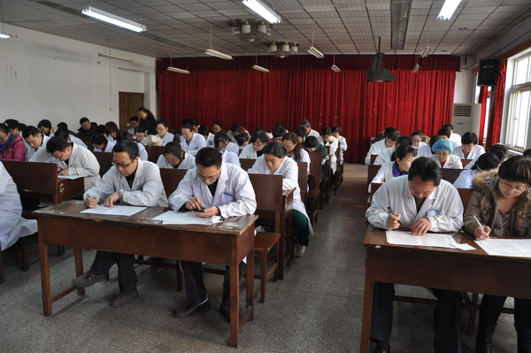 为加强医师执业管理,规范医师执业行为,提高医师素质,确保医疗质量和医疗安全, 12月18日至19日,医务科统一部署,在全院组织开展了执业医师定期考核暨三基三严培训考核工作。 此次考核分为法律法规常识、中医专业、超声专业、心电专业、放射专业、CT专业、中药专业、西药专业及中西医技能操作考核等几部分完成。通过此次考核,促进了医师在取得执业资格后不断更新知识、技能,提高了专业技术能力和水平,对于保持应有的职业道德,更加出色地为人民群众健康服务具有十分重要的意义。我院近300名医师、药师、技师参加了考核。