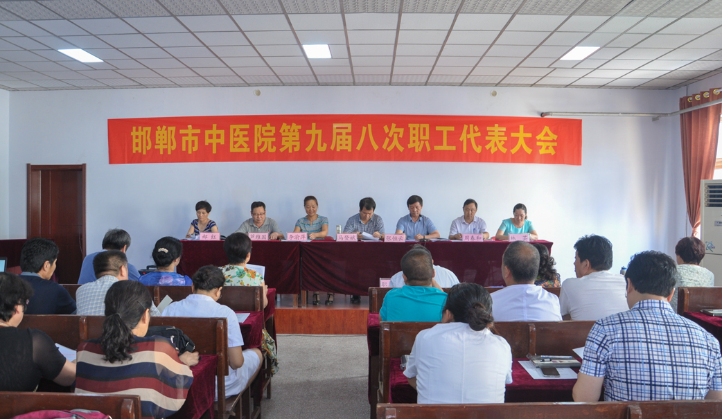827日下午,我院召开第九届八次职工代表大会,旨在审议讨论《邯郸市中医院员工奖惩细则》和《邯郸市中医院院标(徽)设计方案》。院领导班子全体,职工代表及列席代表100余人参加会议。