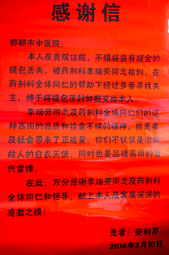 药剂科职工李瑞芳拾金不昧的事迹,彰显了市中医院职工的高尚道德情操,让病人及家属真正感受到杏林春暖”。她为医院赢得了荣誉,在此我们要向她学习,为她点赞!我们有理由相信,在诚实诚信可贵精神的鼓舞下,全院职工将会更好地立足岗位,从小事做起,从细节做起,从现在做起,传递正能量,为病人提供更好的服务,为医院的发展做出更大的贡献。(药剂科 宣传科)