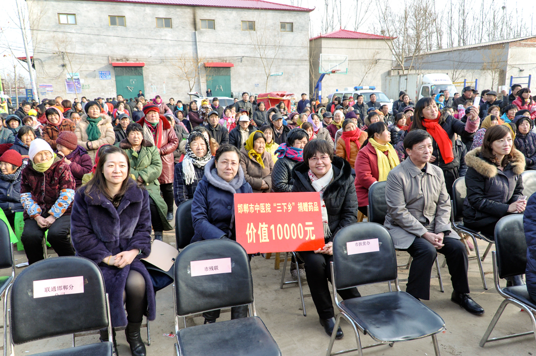 12月29日下午,邯郸市文化科技卫生“三下乡”集中服务活动在魏县大辛庄隆重举行,我院精心组织骨伤科、心肺科、内分泌科、老年病科等科室专家共12人,由院领导张恒云、王莉、王红霞带队,赴魏县进行义诊、捐赠活动。