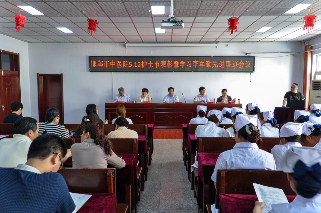 5月11日下午,我院在行政办公楼四楼会议室召开了“邯郸市中医院5.12表彰会暨学习李军勤先进事迹会议”。院领导马登斌、张恒云、王莉、王红霞、李国军出席会议,各科主任,护士长、优秀护士、优质护理服务标兵以及新入职的20名护士等100余人参加了会议。会议由王红霞副院长主持。
