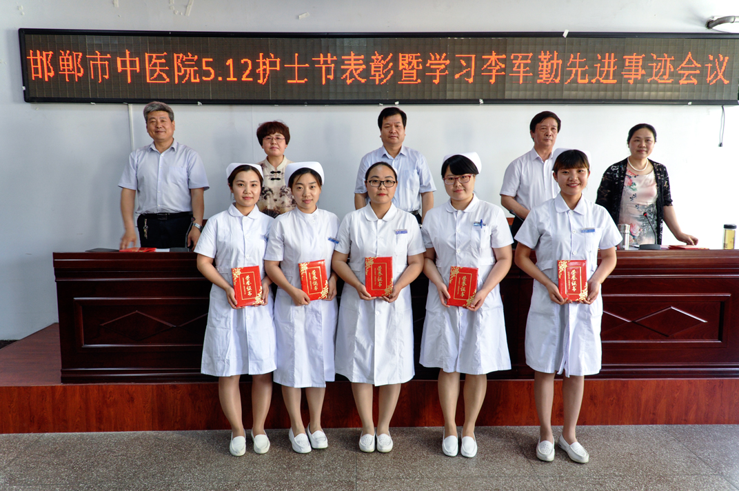 会上,张恒云副院长宣读了《关于表彰2016年度优秀护士、优质护理服务示范科室及标兵的决定》;院领导为获奖人员颁发了奖牌及证书;优秀护士长商淑慧及优秀护士韩朋朋等分别代表受表彰人员发言;王红霞副院长传达了5月9日市里召开的李军勤同志先进事迹报告会的内容,并向全院发出“创文明城市,做健康使者,学习李军勤争做最美中医人的倡议书”,学习她情系患者,时刻以病人为中心的仁爱精神;学习她大爱无私,真情谱写动人篇章的奉献精神;学习她精益求精,争创护理一流业绩的敬业精神;学习她创新管理,传播团队正能量的创新精神。