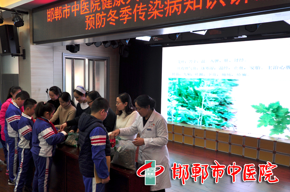 12月18日下午,我院健康大讲堂预防冬季传染病知识讲座走进丛台区实验小学,王红霞健康小屋专家团队成员王红霞院长、郑娜护士长和疾控科杨晓庆科长分别对孩子们进行了从我做起简单有效预防冬季常见传染病的知识讲座。 讲座结束后,专家们还向同学们介绍了一些常见的中药材的药性,并让他们亲自动手将中药材装进布袋中制成养生保健“香囊”。专家与同学们零距离互动,专家耐心认真,孩子们积极热情,现场气氛高涨。健康从娃娃抓起,通过本次活动,专家们将健康生活方式与行为、健康素养基本知识和理念传递给同学们,使他们少生病、不得病,健康成长,快乐学习!(疾控科)