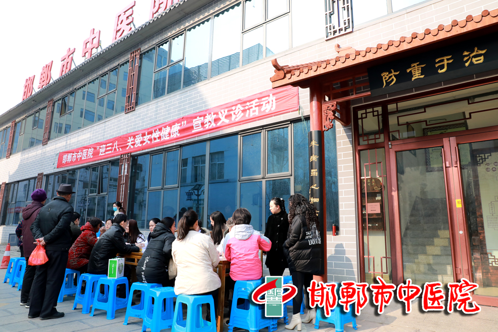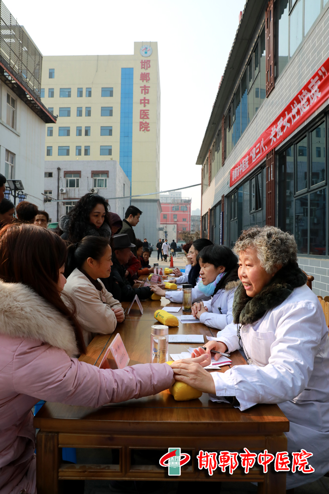 邯郸市中医院为体现公立医院的公益性,在“三八”国际妇女节举行了系列的大型公益活动。继37日的“关爱妇女健康”专家公益讲座之后,38日当天,医院又组织了多名专家在治未病中心楼前,开展了宣教义诊活动。