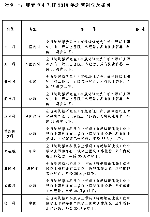 邯郸市中医院 2018年公开选聘专业技术人员公告