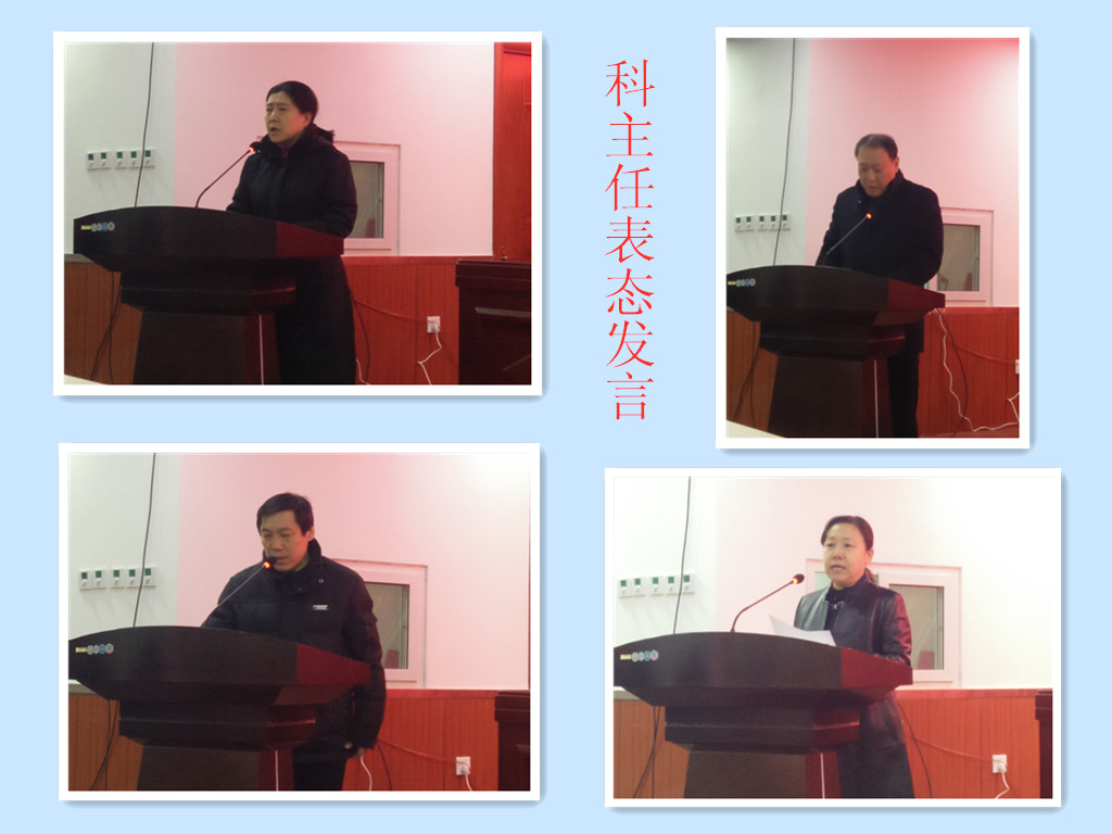 《关于全省中医医院评审工作有关事项的》通知;宣读了三甲评审工作要求。王莉副院长对《三甲评审工作标准》进行了详细的解读。脑一科主任殷春萍、骨伤科主任钱宏代表临床科室,放射科主任祁海平代表门诊医技科室,医务科长王晓敏代表机关科室,分别作了表态发言。均表示将全力以赴,不辱使命,备战三甲复审工作。
