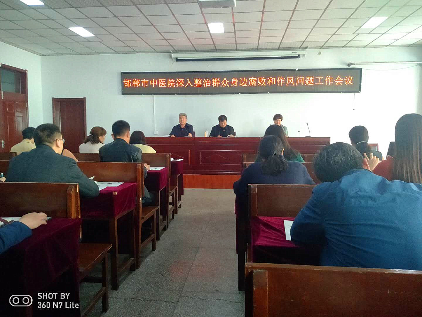4月29日下午,我院在办公楼四楼会议室召开了深入整治群众身边腐败和作风问题工作会议。医院领导班子全体、全院临床、医技及行政后勤科室负责人共计70余人参加了此次会议。会议由王莉副院长主持。 会上,纪委书记李国军首先通报了有关群众身边腐败和作风问题的典型案例,并向参会人员宣读了《邯郸市中医院关于深入整治群众身边腐败和作风问题的实施方案》,要求各科室严格按照该实施方案的任务分工履行职责,协调工作,结合身边的人和事,将深入整治与日常管理工作结合起来,狠抓落实。 党委书记、院长马登斌针对此次深入整治活动,聚焦群众“看病难、看病贵”问题,结合医院实际,特制定了邯郸市中医院整治群众身边腐败和作风问题“十不准”,并带领与会人员进行了认真学习,强调群众身边的腐败和作风问题无小事,全院干部职工要围绕此次活动认真查摆自身不足,共同推动深入整治群众身边腐败和作风问题活动有效开展。(监察室 供稿)