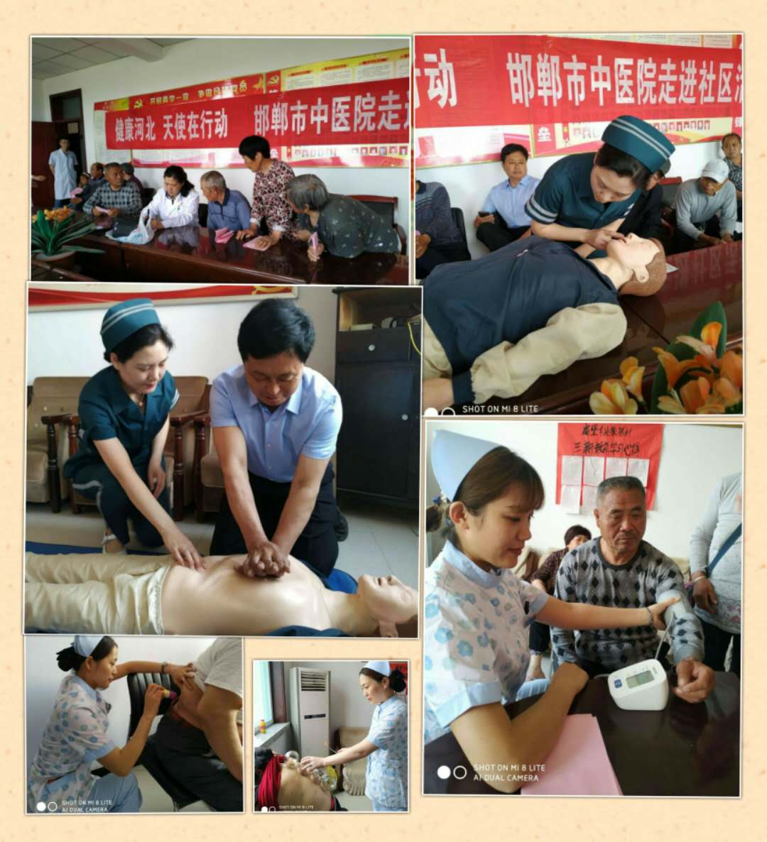 为了纪念5.12国际护士节的到来,我院积极响应河北省护理学会号召,以“健康河北,天使在行动”为主题,护理部牵头举办了系列活动。 ★走进健康小屋活动。5月11日下午,护理部组织部分优秀护士同脑一科主任殷春萍专家团队一起走进邯山区北寨张村“殷春萍健康小屋”。医护团队为众多村民义诊,并进行测血压、拔火罐、耳穴贴压、雷火灸等中医适宜技术操作和急救知识培训。