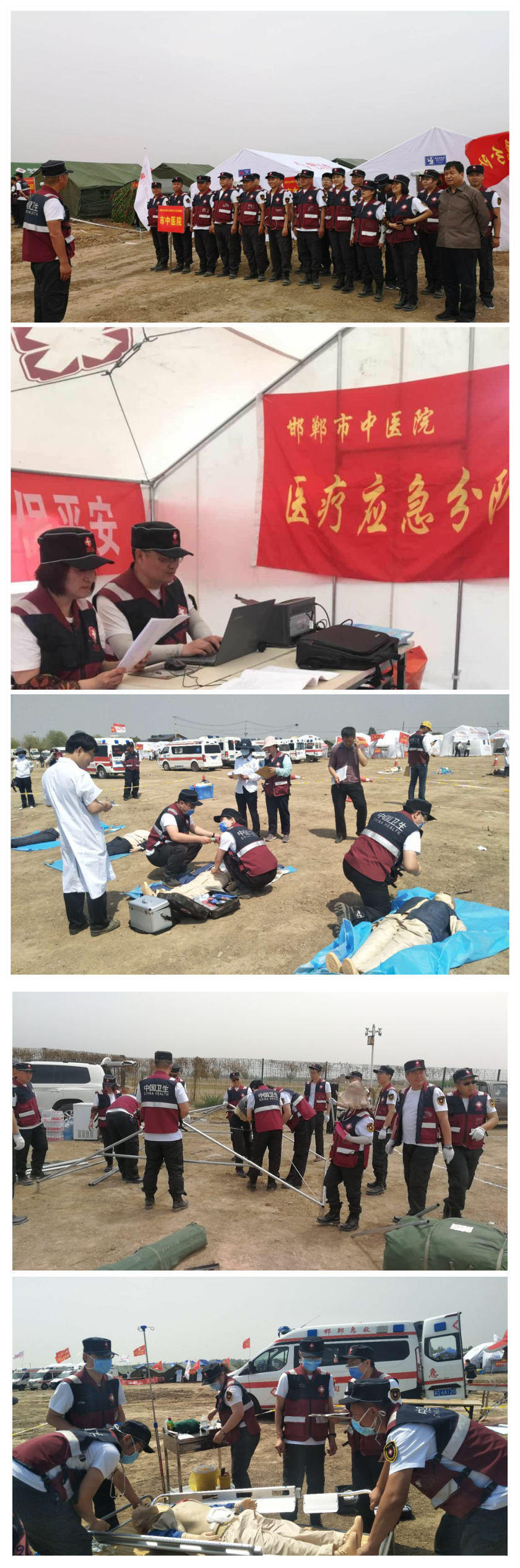 5月14日至15日,邯郸市应对重大自然灾害卫生应急实战演练,在邯山区西南卓发生态苑附近列队展开。我院组队参加了此次的应急演练。 应对重大自然灾害卫生应急实战演练,是为了贯彻落实2019年全市卫生应急工作会议精神,切实做好重大自然灾害医疗卫生救援工作,提升各医疗卫生单位应急处置能力和卫生应急队伍的应急反应及协同作战能力。医院党委书记、院长马登斌非常重视本次应急演练活动,强调了卫生应急演练工作的重要性和紧迫性,制定了科学可行的参演方案。要求疾控科、医务科、总务科、保卫科、急诊科、药剂科、器械科、办公室、信息科等科室通力协作,全力做好后勤物资装备、食品供应、车辆、器械、药品等项保障工作。迅速从各科抽调22名精干队员,组成了一支业务水平高、训练有素的应急演练队伍,由纪委书记李国军,疾控科科长杨晓庆带队,按时赶赴指定地点集结。 在演练现场,李书记带领队员们平整地面、环境消杀、开设营地,分工合作,搭建应急救护场所,应急指挥所、物资保障大本营等;应急队员们参加了院前医疗急救、院内紧急医疗救治、心理救援、紧急更换轮胎等项目的考核;救援队员沉着冷静,检伤分类、现场包扎、快速转运,心肺复苏、气管插管、心脏除颤、止血缝合,心理救援,指挥有序,忙而不乱,有条不紊;安保队员夜间进行消防安全排查、宿营地值班巡逻,保障了营地内安全;食堂人员保障有力,制作了可口的大锅菜、花卷、水饺等,保证了队员的战斗力。 通过本次卫生应急培训和演练,检验了我们应急预案各部门整体的有效性、衔接性和高效协作性。起到了以练促建、以建促改、以改促评、以评促进的目的。进一步提高了我院应急保障意识、政策理论和管理水平,提升了我院应急队伍的应急实战处置能力。(疾控科 供稿)