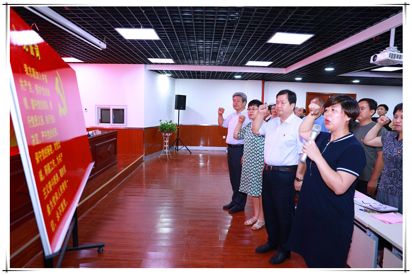会议最后全体党员起立,面对鲜红的党旗重温了入党誓词。 医院召开的迎“七一”暨加强基层党建学习教育大会,是深入学习落实党的十九大精神,坚持以习近平新时代中国特色社会主义思想为指导,牢固树立“四个意识”,加强基层党建工作,认真落实“三会一课”和“两学一做”常态化教育的重要会议。会议的召开必将充分发挥基层党组织战斗堡垒和党员先锋模范作用,医院全体党员必将不忘初心,牢记使命,为医院的建设和发展凝聚更大的合力。